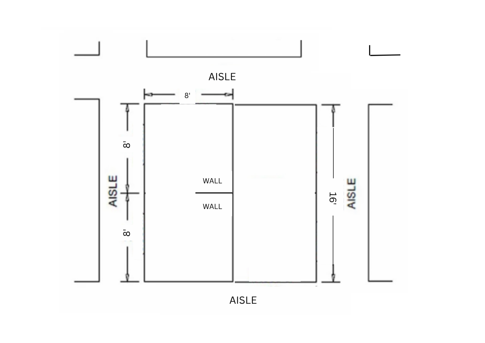Exception: Double sided signage must be set back at least 8’ (2400mm) from neighboring booths to prevent visual obstruction.